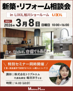 2026年3月8日 | 新築・リフォーム相談会 開催 in LIXIL旭川ショールーム新着!!